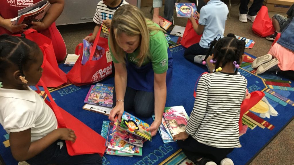 A crowd of students and adult volunteers bustle about at Eldridge L. Miller Elementary School in Stone Mountain. They’re exchanging…